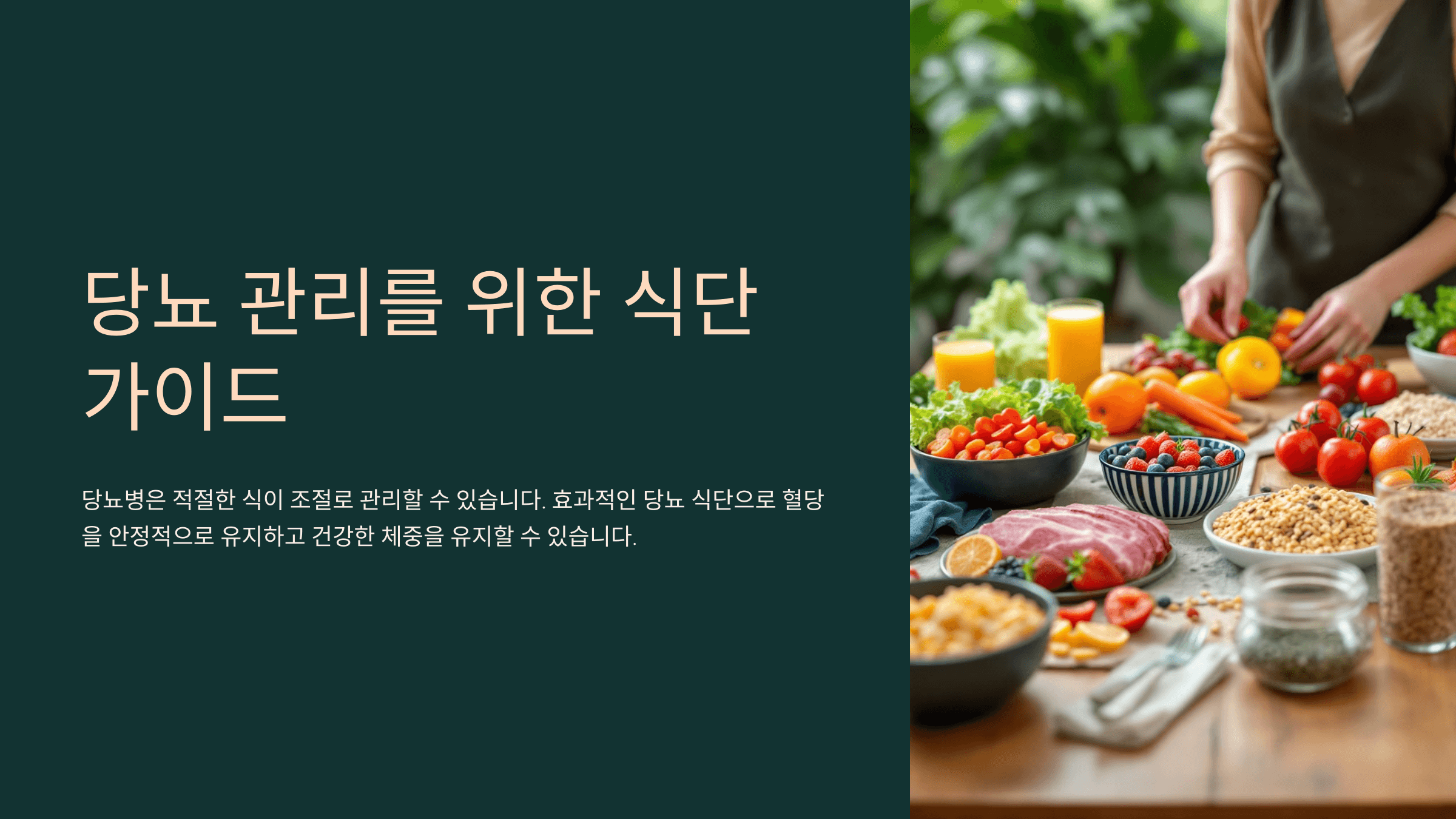 당뇨병은 적절한 식이 조절로 관리할 수 있는 질환입니다. 효과적인 당뇨 식단을 통해 혈당을 안정적으로 유지하고, 건강한 체중을 유지할 수 있습니다. 이번 글에서는 당뇨 식단의 기본 원칙부터 실제 식단 예시까지 살펴보겠습니다.😊