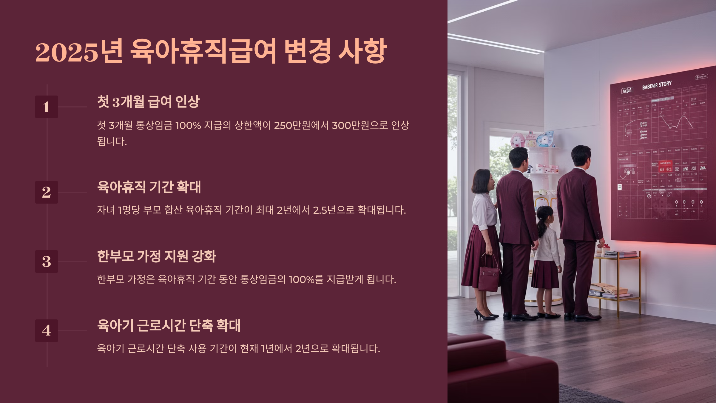 2025년에는 육아휴직급여 제도가 더욱 강화되어 부모들에게 더 많은 혜택이 돌아가게 되었어요. 특히 급여 지급액과 신청 절차에서 중요한 변화가 있었답니다! 📢
