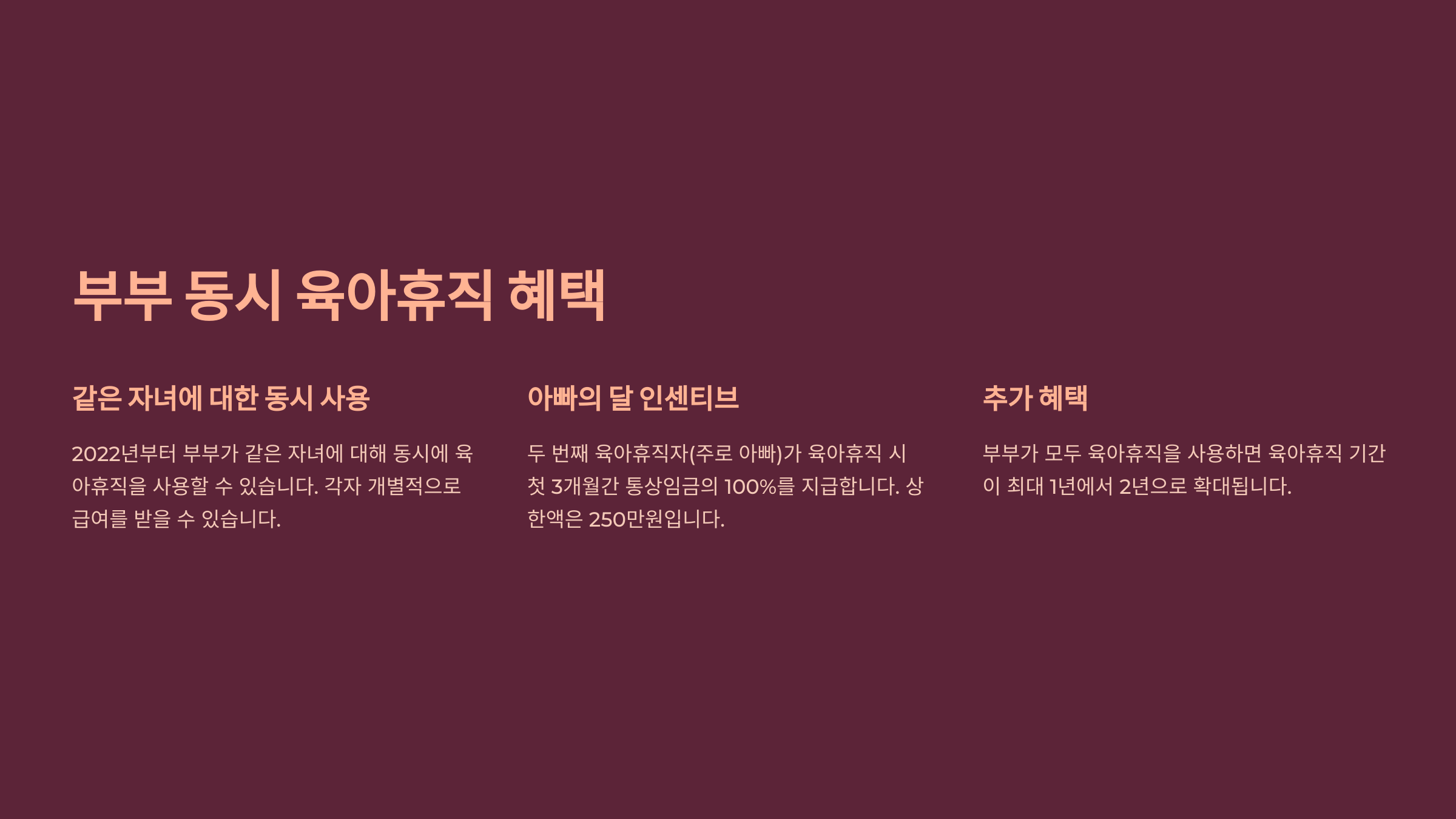 👨👩👧👦 부부 동시 육아휴직 보너스 확대