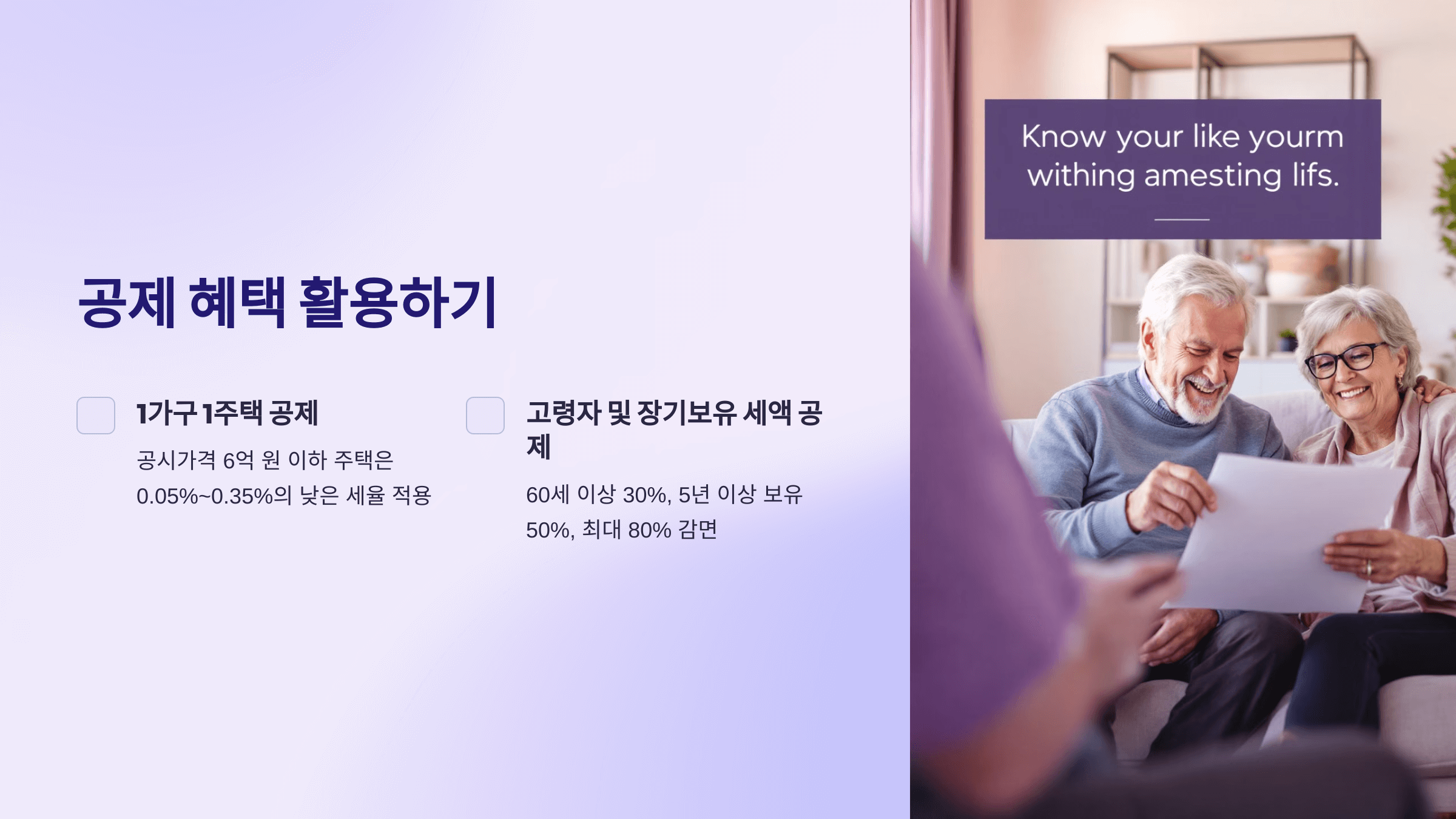 재산세를 줄이는 가장 기본적인 방법은 공제 혜택을 최대한 활용하는 것입니다. 많은 분들이 이 혜택을 모르고 지나치는 경우가 많아요.