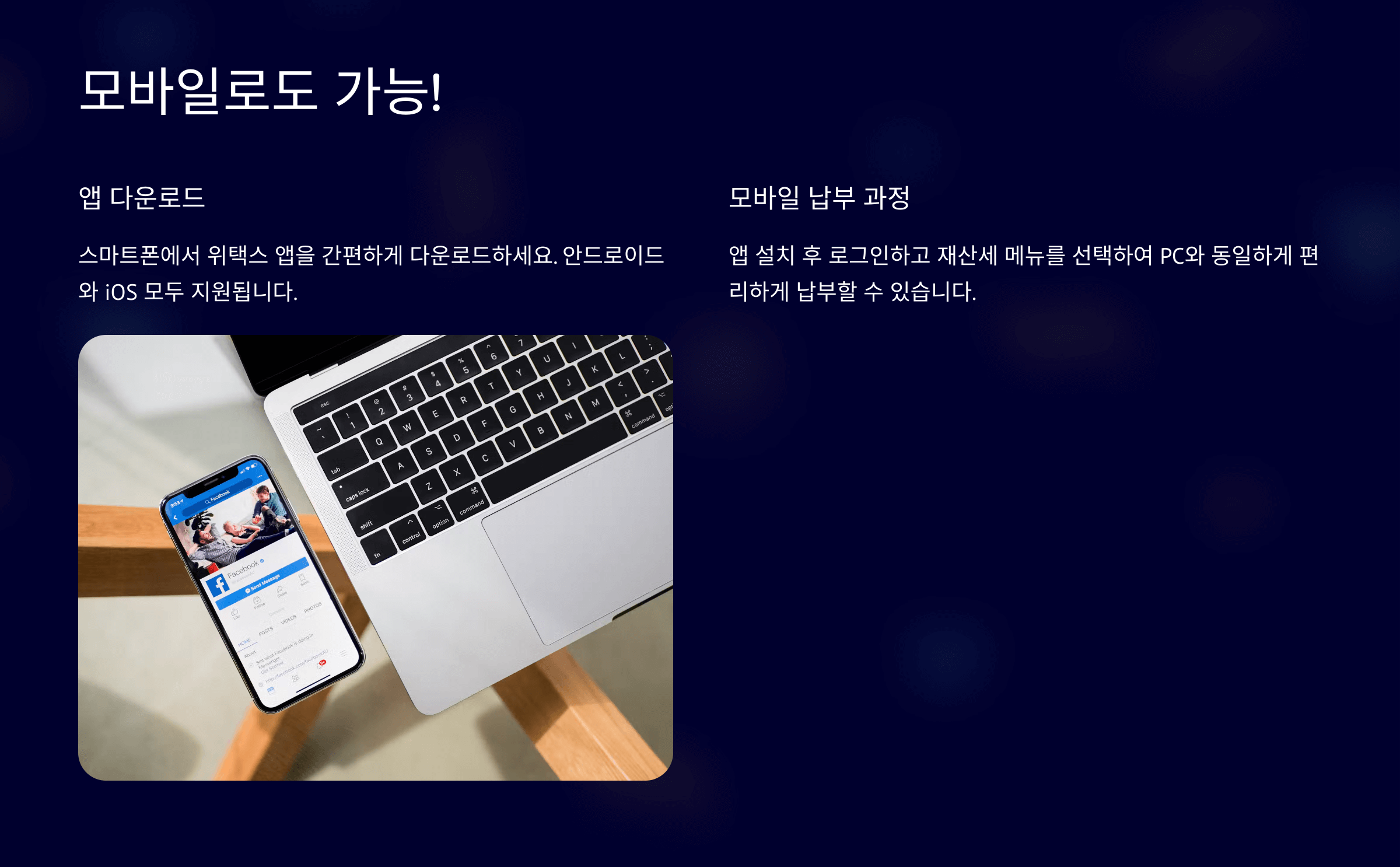 위택스는 PC뿐만 아니라 모바일 앱으로도 간편하게 이용할 수 있습니다.